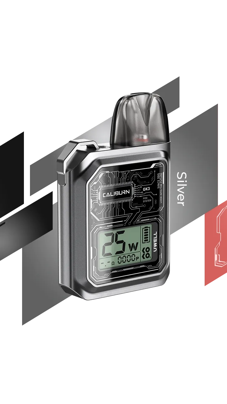 Uwell Caliburn GK3 در رنگهای مختلفی مانند مشکی، نقرهای، قرمز، آبی و سبز عرضه میشود، بنابراین میتوانید رنگ مورد نظر خود را انتخاب کنید.