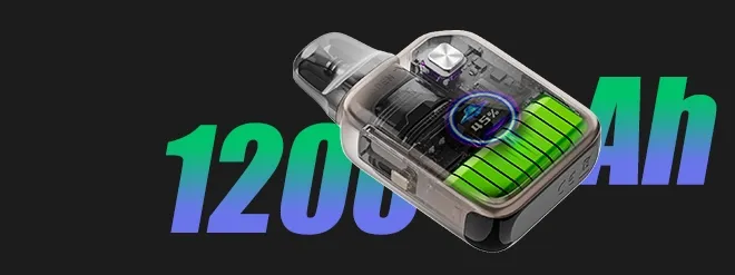 باتری قوی 1200 میلیآمپر ساعتی با پشتیبانی از شارژ USB-C به کاربر این امکان را میدهد تا بدون نگرانی از شارژ زودهنگام، در طول روز از دستگاه استفاده کند. نمایشگر TFT رنگی اطلاعاتی مثل وضعیت باتری، توان خروجی، مقاومت کویل و تعداد پاف را بهصورت واضح نمایش میدهد و کنترل کامل دستگاه را در اختیار کاربر قرار میدهد.